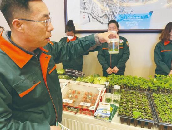 優(yōu)質(zhì)草莓苗走進展會,受到很多消費者青睞。 趙濱 攝