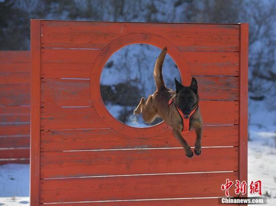 1月18日,在吉林省森林消防總隊(duì)特勤大隊(duì)訓(xùn)練場(chǎng)內(nèi),搜救犬正在訓(xùn)練。為提高搜救犬在嚴(yán)寒環(huán)境的適應(yīng)和實(shí)戰(zhàn)能力,吉林省森林消防總隊(duì)特勤大隊(duì)搜救犬分隊(duì)近期通過(guò)障礙攀登、繞腿訓(xùn)練、廢墟搜索訓(xùn)練等科目,對(duì)搜救犬進(jìn)行冬訓(xùn),進(jìn)一步提升訓(xùn)導(dǎo)員與搜救犬的默契度和技戰(zhàn)素養(yǎng)。