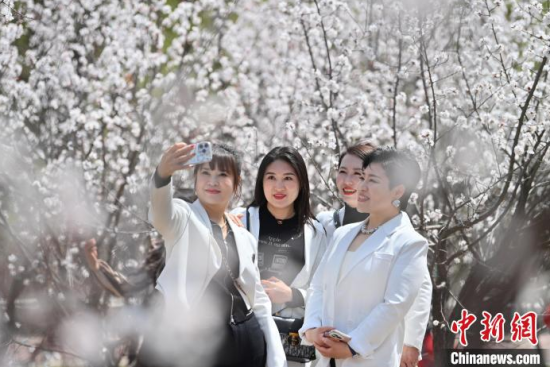 4月23日,吉林長春,市民在櫻花島賞花。隨著氣溫升高,長春街頭及公園里的春花競相綻放,為城市增添亮麗色彩,吸引市民盡享春日美景。中新社記者 張瑤 攝