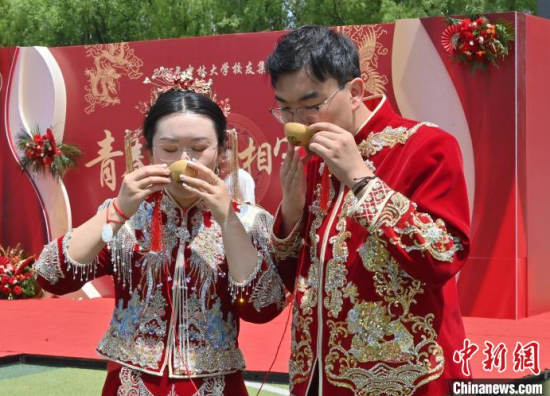 6月21日,吉林大學(xué)中心校區(qū)舉行2025年校友集體婚禮,36對新人從四面八方相聚在母校,在眾人矚目下有序步入婚禮主舞臺,沿途得到學(xué)弟學(xué)妹們的熱情祝福。中新社記者 張瑤 攝
