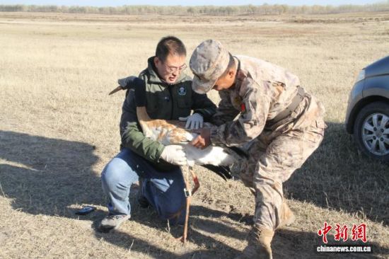 這只編號為JM-219的白鶴半個月前在黑龍江勝山國家級自然保護(hù)區(qū)附近被救護(hù),被村民發(fā)現(xiàn)時(shí)體力透支、頭部帶傷。勝山保護(hù)區(qū)工作人員將其送入救助站喂食小魚并進(jìn)行康復(fù)護(hù)理。為幫助它重返遷徙群體,該保護(hù)區(qū)決定將其轉(zhuǎn)送至白鶴遷徙路線的重要節(jié)點(diǎn)——吉林莫莫格國家級自然保護(hù)區(qū)。